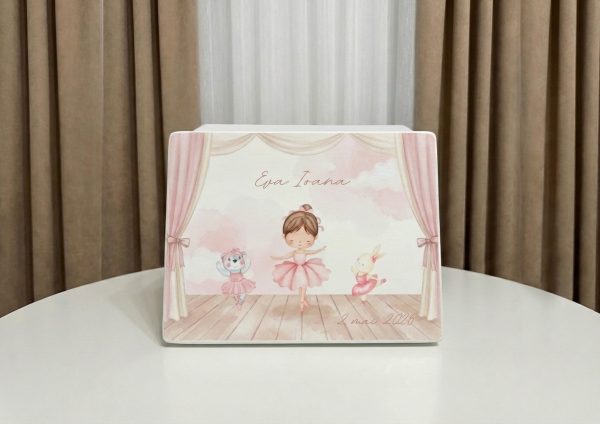 Cutie de Lemn Personalizata, Model Baby Balerina pe Scena, Cufar Amintiri Botez Fetita