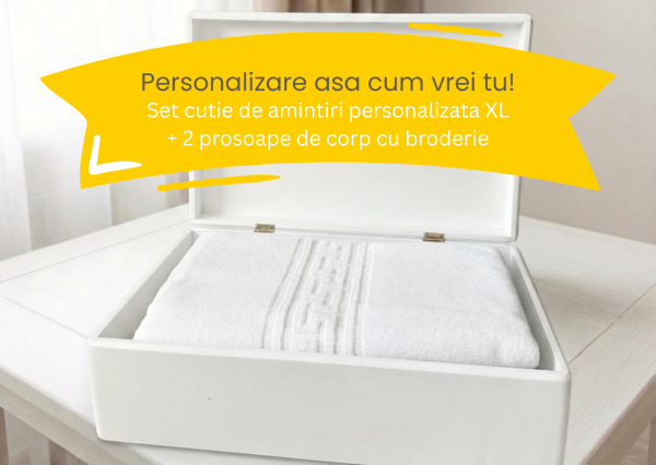 Totul se stabileste impreuna pe WhatsApp (0763693536) sau email inainte de productie. Designul cutiei, culorile, textul, broderia prosoapelor, exact asa cum ti l-ai imaginat.